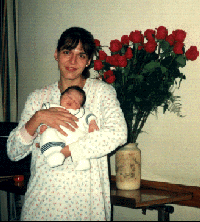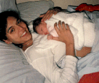 Con mi mami a solas en la cama, tengo un poco de hambre, espero que me d� comida.